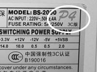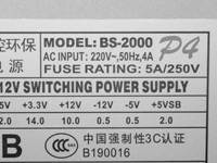 5.假货的电源大标贴上“P4”处有“3C版”字样,真货同样位置处无(机箱专配的BS-2000P4上有“3C版”字样)。