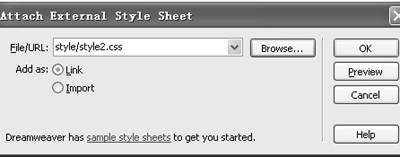 首先我们给页面链接一个已经编写好的CSS文件,这里的操作与老版本Dreamweaver的方法是相同的(图1)。