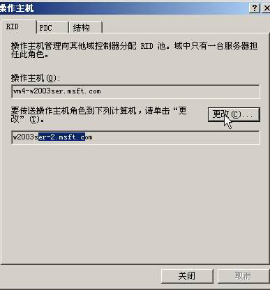 按照前面的操作,从“PDC”选项卡中更改“操作主机”为W2003ser-2,然后从“结构”选项卡中更改“操作主机”为W2003ser-2。