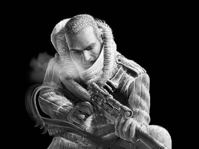 俄国的天气就是与众不同,还是秋天就已经大雪纷飞了。但雪花和寒冷并不能对战争造成丝毫影响,德军一如既往地向我们发动进攻。当指挥官告诉我德军方面有一位厉害的狙击手的时候我几乎无法抑制自己的兴奋。我是名贵族,而贵族的荣誉是在决斗中体现的。长期以来还没能见到能与我一较高下的狙击手。刚开始,我确实很佩服敌人的狙击手,他不但百发百中,而且装填弹药利索,对突发事件的反应相当快。如果就这么冲出去,被击中的一定是我而不是他。可是,很快地,他接下来的动作却令我大失所望──他完全忘了狙击的真谛是隐蔽自己,大咧咧地跑到铁轨这边来射击。我很快地发现他的一个视野死角,就是在我背后的房子的2楼靠东的窗户。刚才那里或许并不安全,可现在那里正好在他的正右方,他是不可能看见我的。我冲进屋子,爬上2楼,来到窗前把头伸出去。这里几乎可以直接看见他的头顶,真是个好位置。我像以前一样架起枪,把瞄准器的准星对准他的右耳。