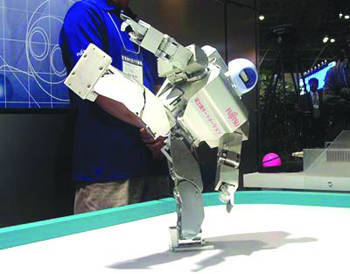 会像赵薇那样打太极拳,甚至还会日本相扑的机器人见过吗?这就是由富士通公司开发的机器人HOAP-2。它只有6公斤重、48厘米高,全身有25个关节,具有高度平衡能力,能够做出各种高难度动作,如打太极拳、倒立、踢球、跌倒后站起来等。瞧瞧图中这位,正在模仿日本相扑手把其中一条机械腿提上半空中,以另一条腿金鸡独立。