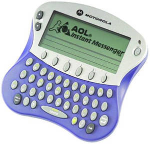 据说现在很多美国人对IM(即时通讯)很恼火,因为他们的孩子几乎都会沉迷于IM,独霸家里的电脑。摩托罗拉就推出了一款IMfree掌上即时通讯机。IMfree带有单色显示器,允许9行文本显示,还带有一个微型键盘。当然最为不错的是,由于这一服务与AOL的免费AIM服务联网,所以用户购买了上述设备之后不必缴纳服务费。