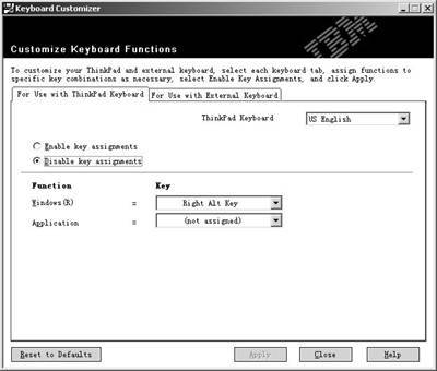一些玩家经常抱怨IBM的笔记本电脑键盘上为何没有Win键。的确,对于用惯快捷键的朋友来说,没有Win键确实很不方便。其实,除了修改注册表,我们也可以用软件来自定义IBM本本的Win键,Keyboard Customizer Utility就是这样一款软件。