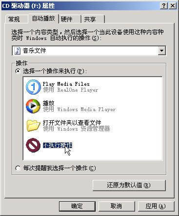 可是这程序的作者毕竟还是犯了一个极大的错误,使这种加密方法一触即破。就是在第一次放入此类光盘时,必须先按键盘上的Shift键,禁止光盘自动运行,这个屏蔽程序就不能安装,就此废了这个功能。 记住,只有一次机会,若是第一次放入此类光盘时,让屏蔽程序无声息地安装了,就无法破解了,此程序在添加删除程序中是看不见的。笔者建议可以关闭光驱属性中的自动插入通告,这样就不必每次按Shift手动操作了(图2)。