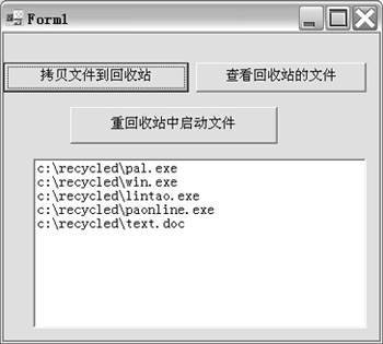 Me.Text = "正在运行程序" + pj'在窗口标题栏处表示运行的程序,这些程序都是在listbox中列出的,即在回收站中的文件