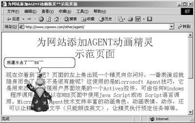 如果你拥有自己的个人主页,想不想在网页中添加类似OFFICE的动画精灵呢?别以为这是一件不可思议的事情,利用Microsoft Agent技术,可以轻松打造个性化的动画精灵网页(见图)。