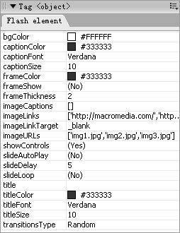 首先点击图片浏览按钮在页面中插入Flash Element并保存,选中插入页面中的动画元素,这时在原来的标记对话框基础上会跳出来Flash Element元素的属性(图3)。