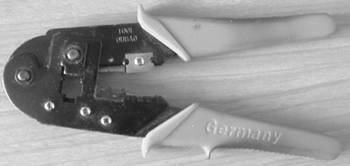 压线钳(图7)具有3个功能,它的最前端是剥线口,可用来剥开双绞线的外壳;中间用于压制RJ-45头;离手柄最近端是锋利的切线刀,此处可以用来切断双绞线。在没有上面两种工具的情况下,它可以单独完成网线的制作。压线钳的质量直接关系到网线接头的制作成功率,大家最好选择质量较好的产品。