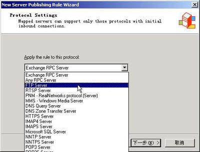 ③在“Protocol Settings”菜单中,选择将要用到的协议,从中选择“FTP Server”,(图2)。