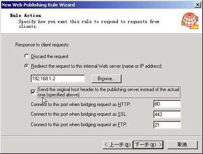 ③在“Rule Action”中,选择“Redirect the request to this internal……”并在下面键入Web服务器的IP地址192.168.1.2(图3)。