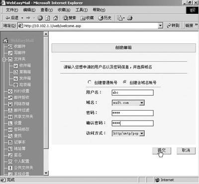如果使用Web界面发信,就使用创建的邮箱登录,如abc@msft.com(登录用户名必须包含域名),然后输入密码,登录后就可以发邮件了。