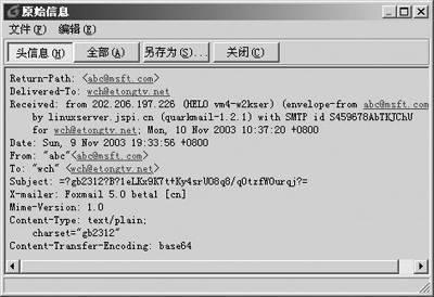从图5中可以看到,邮件确实是从abc@Msft.com发来的,但仔细观看,还会发现一个IP地址202.206.197.226,这是发信的服务器的地址,不过很多人只重视发信人地址、很少会注意发信的IP地址。