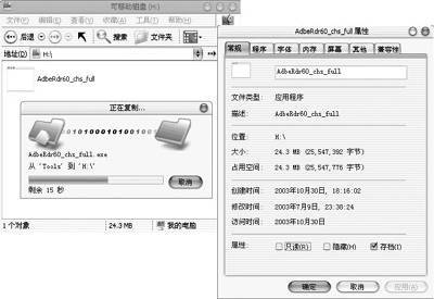 这个经过加工的闪存,是否真就拥有了32MB的容量呢?毕竟它的存储芯片容量仅为16MB。于是我们向其中复制一个容量为24.3MB的文件,复制过程中未见任何异常,除了图标不正确外,复制到闪存上的文件属性均显示正常(图7)。