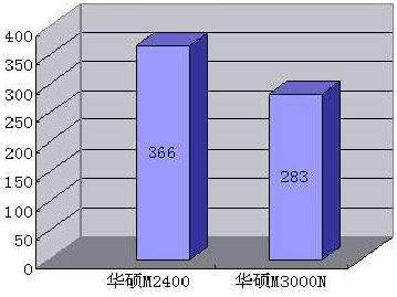 目前Intel发布的Pentium-M处理器的最高频率为1.7GHz,华硕这两款笔记本电脑配置的Pentium-M 1.6GHz处理器也算是高端产品了。从MobileMark2002的测试结果来看,两台笔记本电脑的性能都很优越,而M3000N的内存超过M2400一倍,所以性能更高一些。