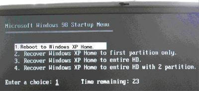 华硕M2400还带有快速恢复系统功能。原理是预先将系统备份在一个隐藏的分区中,这将占用1.8GB的空间。在M2400启动时按下F9键就会出现一个选择菜单。如果你觉得这个功能对你没有用,你可以用PQMagic程序将这一隐藏分区清除。