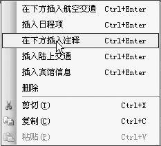 图2表单中应用了“可选节”的地方不止一处,凡鼠标移过之后显示矩形虚线框的区域左上角均带有“可选节”下拉按钮。为了进一步说明此次出差的目的,小李单击“开始日期”左上方的按钮,选择菜单中的“在下方插入注释”命令(图5),当前表单的下方就会出现一个“注释”框。