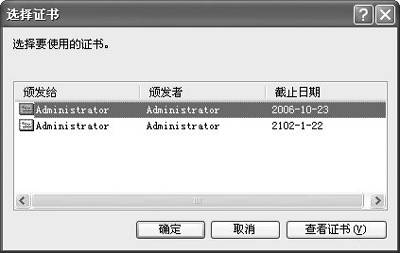 先使用“选择证书”按钮在图7中选择一个证书,“确定”之后即可在图6的“颁发给”、“颁发者”和“失效日期”后看到相关信息。最后在“输入要包含在签名中的注释”下输入自己的姓名,完成后单击“确定”按钮将所有对话框关闭。