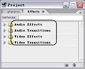 单击Premiere7.0的菜单“Window→Effects”就会在Project窗口中出现Effects标签,如图1所示。从图中我们可以看到,Premiere7.0将Video和Audio的特效及转场全部放在一起了。要使用其中的特效或转场,只要单击左边的的右键头符号即可选中打开的特效或转场,将它拖到时间线的剪辑(Clip)上即可。下面的一条新功能对于音频爱好者来说更是莫大的惊喜,单击图1 Effects特效中的Audio Effects左边的右箭头符号,可以看到Premiere7.0中增加了对5.1声道的支持,有了5.1声道特效的支持,我们可以轻松地制作自己喜欢的DVD了。