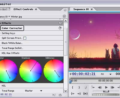 色彩校对是Premiere7.0比较突出的特色,它能够实时地显示出各种色彩特效,很专业。而且这种特效不只是对静态图片有效,对动态视频也同样有效,如图4所示。
