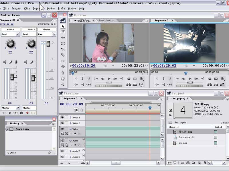 值得一提的是,Premiere7.0新增了一个History(历史操作)窗口,用过Photoshop的朋友都应该知道,History窗口是用来恢复以前的操作步骤的。现在Premiere7.0也有了这项功能,就不怕误操作了。