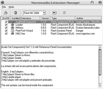 按照上面的方法把另外一个组件也安装好并重新启动你的Flash MX 2004,在组件对话框中查看是否已经加载了它们(图2),今后我们将从此处调用这两个组件。