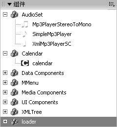 从网上下载两个组件:AudioSetComponent和CALENDAR Component(各大网页、Flash制作资源站一般都有提供),也可以直接从http://www.52flash.net/temp/component.rar处下载。