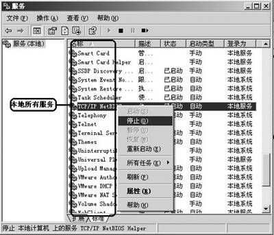 如果我们要关闭正在运行的服务,只要选中它,然后在右键菜单中选择“停止”即可。但是下次启动机器时,它还可能自动或手动运行。