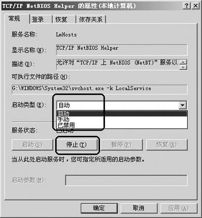 10.TCP/IP NetBIOS Helper:NetBIOS在Win 9X下就经常有人用它来进行攻击,对于不需要文件和打印共享的用户,此项也可以禁用。