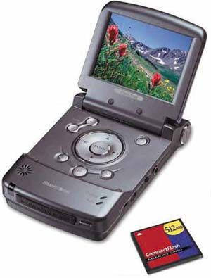 虽说各种数码相机伴侣产品的架构基本相同,但不同的产品在接口,功能上还是有一定的差别。有的产品采用的是USB1.1接口标准(传输速率12Mbps),而有的产品却采用了更高速的USB2.0接口(传输速率为480Mbps)。另外,大多数产品都内嵌了灰度液晶屏,使用户可以直接对照液晶屏操作。而部分高端产品内置了彩色液晶屏(如图2),用户可以查看照片甚至播放视频。