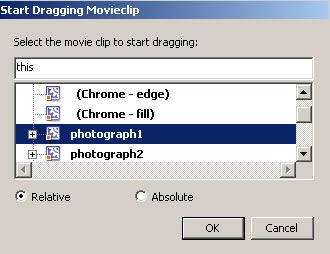 12.在弹出的Start Draging Movieclip对话框中选择Photograph1元件后点击OK按钮(图3)。这样我们设置好了使用鼠标拖曳图形的功能。