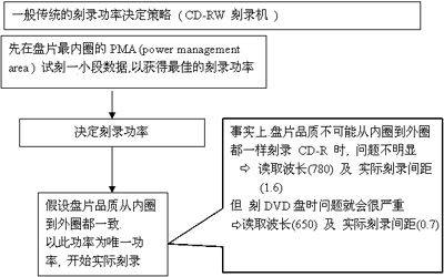 可见同样是作数据记录,但是DVD的盘片表面的Pit与Land相对CD要紧密很多。为了刻录高品质的盘片,在整个过程中保证正确的写入功率是非常重要的。随着刻录倍速的提升,要保持刻录品质,提高Pit或Land记录信息的精确性,如果没有单独针对不同的写入速度设置写入功率,很难保证DVD刻录时稳定的写入品质。此外,还有一些因素影响着刻录品质,那就是DVD刻录盘片本身的品质问题。在实际使用中,如果遇到DVD刻录盘片品质较差,盘片内圈与外圈特性有差异,而这时在刻录过程中激光头一直使用同一功率对盘片进行刻写,势必会造成Pit或Land记录信息出现误差,从而影响刻录品质,甚至造成刻录失败!