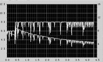 在表中,我们对刻录过程中使用WOPC技术与不使用的关键参数参考值进行比较,很明显使用WOPC技术的状况要好很多。图7、图8是两次的测试过程中的记录数据。