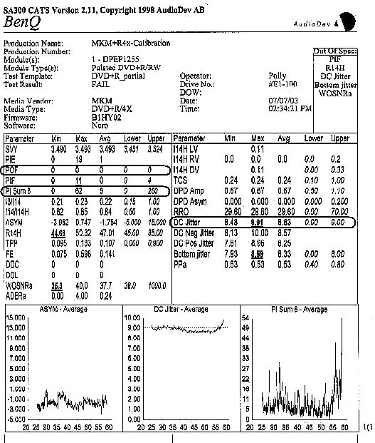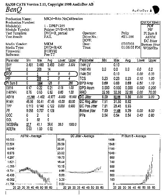 采用WOPC技术后,DVD的刻录品质会有提高吗?我们使用MKM DVD+R盘片进行4×实际写入测试,采用WOPC技术的前后对比结果请见下表。
