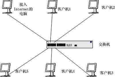 对等网的组建非常简单,将各台电脑通过网线连到交换机或是集线器,即可完成网络的组建,如图1所示。