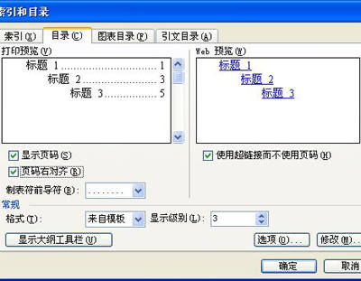 “页码右对齐”选项可以使页码与右页边距对齐;“制表符前导符”选项可以选择索引项和页码之间的实线、虚线等符号;“缩进式”选项可以在主索引项下方列出次索引项,“接排式”选项则将次索引项与主索引项置于同一行;“栏数”选项将索引设置为用户输入数字所确定的栏数,如果想使索引的栏数与文档中的栏数相同,可以选择“自动”;“语言(国家/地区)”选项供用户选择用于索引的语言,你只需打开列表进行选择即可;单击“修改”按钮,可以打开“样式”对话框修改索引使用的样式。