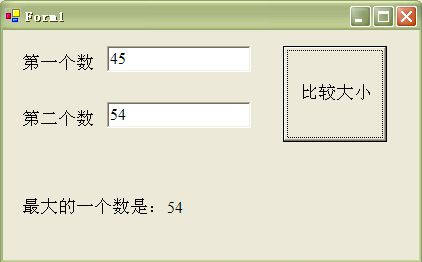 编译并运行程序。在两个框中填入两个数45、54,点击“进行比较”按钮即可得到相应的结果。