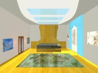 最后灯光和材质都设置完成以后我们就可以渲染输出作品了,最终完成的卧室效果如图16所示。