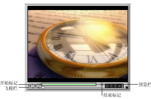 (2)仅播放预览区域:在修整视频时,常常需要在修整栏上设置开始标记和结束标记,以确定素材修整后的区间。在这种状态下,如果单击“播放”按钮,将从飞梭栏上滑块的当前位置开始播放素材。如果你希望查看开始标记与结束标记之间的视频内容,在按住Shift键的同时,单击“播放”按钮即可。