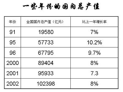 在“新中国的翻天覆地的巨变、初步实现了国家的繁荣和富强”一页中插入一个表格,其中的数据是新中国成立以来一些年份的“全国国内总产值”及其“比上一年的增长率”。
