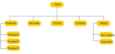 网站的结构分析一般是从网站的功能或内容角度进行,我们往往把网站内具有相同功能或内容类别的部分归为一个栏目,然后对这个栏目下包容的元素重新进行划分,从而得到相应的子栏目。例如我们现在要建设的这个网站就是根据内容方面的需求来划分网站结构的。如图1所示。