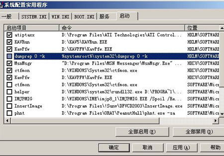 选择“开始”菜单中的“运行”命令,在“运行”对话框中键入“Msconfig”,回车后会弹出“系统配置实用程序”对话框,选择其中的“启动”选项卡(如图1),该选项卡中列出了系统启动时加载的项目及来源,仔细查看每个项目是否需要自动加载,否则清除项目前的复选框,加载的项目越少,启动的速度就越快。设置完成后需要重新启动方能生效。