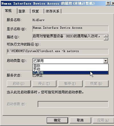 选择“开始”菜单中的“运行”命令,在“运行”对话框键入“services.msc”后回车,即可打开“服务”窗口。窗口的服务列表中列出了系统提供的所有服务的名称、状态及启动类型。要修改某个服务,可从列表双击它,会弹出它的属性对话框(如图3),你可从“常规”选项卡对服务进行修改,通过单击“启动”、“停止”、“暂停”、“恢复”四个按钮来修改服务的状态,并可从“启动类型”下拉列表中修改启动类型,启动类型有“自动”、“手动”、“已禁用”三种。如果要禁止某个服务在启动自动加载,可将其启动类型改为“已禁用”。
