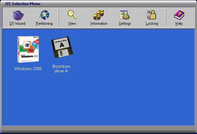 从图中可以看到,程序不仅提供了系统启动引导菜单,而且直接提供了一个很直观的界面,其工具栏中的“OS Wizard”表示激活程序的操作系统安装向导OS Wizard、“Setting”表示设置程序的运行方式,其中包括了9个设置项目,如设置启动菜单的默认引导项和自动启动延时、是否允许使用鼠标、设置用户登录口令、设置程序可以控制的引导系统文件存放位置等、对启动引导菜单中的项目排序及添加/删除菜单项、设置启动菜单项的描述文字与显示图标。如图23所示。