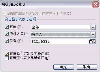 若要查看自己或其他人解决共享冲突的情况,可以在冲突日志工作表中查看这些信息。具体操作方法是:打开共享工作簿,单击“工具→修订”子菜单下的“突出显示修订”命令。首先打开对话框中的“时间”下拉列表,选择其中的“全部”,然后清除对话框中的“修订人”和“位置”复选项。选中“在新工作表上显示修订”复选框,单击“确定”按钮即可看到“冲突日志工作表”。它的右边有“操作类型”和“操作失败”两个数据列,其中被保留的修订冲突在“操作类型”列中显示“成功”;而“操作失败”列中的行号代表含有未保存修订冲突信息的行,其中包括已经删除了的数据。