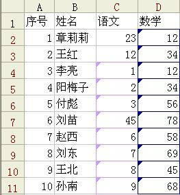 设置了用户编辑特定区域不需要密码以后,用户打开共享工作簿以后可以直接编辑属于自己的区域,例如语文和数学老师可以直接编辑图1中C、D列的内容等等。