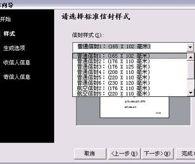 打开向导以后单击“下一步”按钮,就可以看到如图20所示的对话框。你的任务就是打开“信封样式”下拉列表,从中选择你正在使用的信封规格,实在找不到也可以选择最接近的规格。