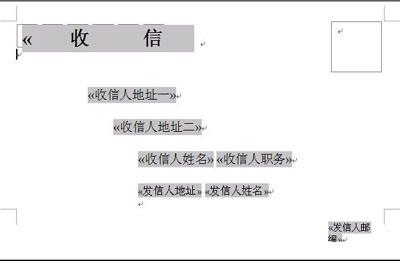在上面这个例子中,发信人地址、发信人姓名和发信人邮编都是固定的,我们可以把如图21中的上述三个合并域删除,然后输入上面三个内容。这样打印出来的信封就有发信人地址等内容了。