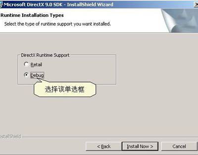 需要注意的是,在“安装类别选择(DirectX Runtime Support)”界面中会有2个单选项供我们选择。其中“Retail(零售)”选项,建议仅用于单独运行游戏的用户选择,该安装将不会帮助开发者在编译过程中发现错误。“Debug(调试)”选项,建议专业开发者使用,该安装运行虽然较慢,但可帮助开发者调试程序。