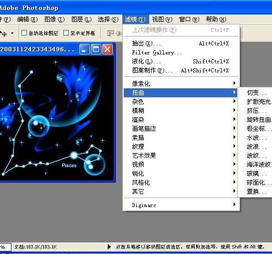 Distort(扭曲)滤镜通过对图像应用扭曲变形实现各种效果。如图2所示。
