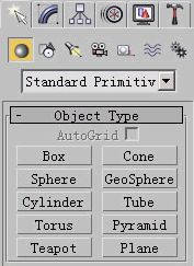 (3)在3DS MAX6中,视图有许多种,具体包括:标准视图(即上图所示)、摄影机视图、灯光视图、栅格视图、图解视图、实时渲染视图和扩展视图等等,它们的作用和内容各不相同,下面我们来对这几种视图进行分别介绍。